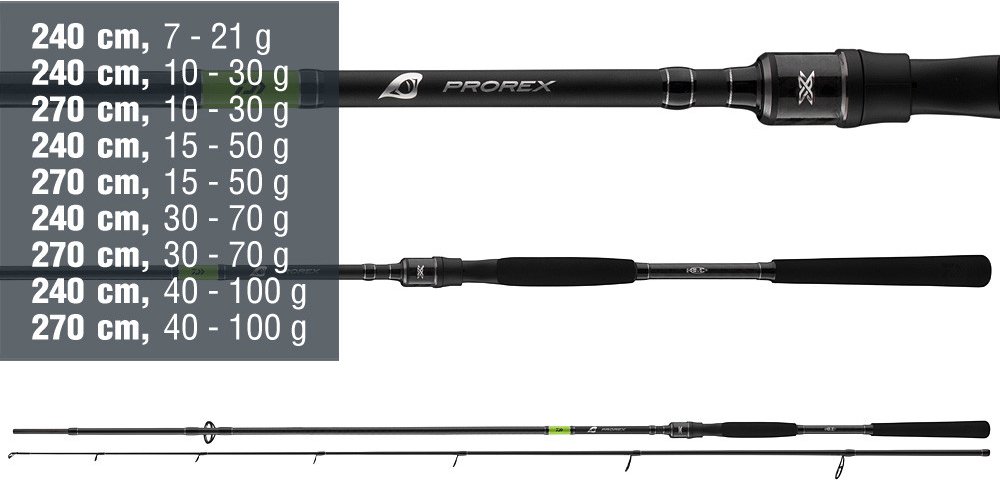 Akce prutů Prorex X byla přizpůsobena speciálním požadavkům různých moderních technik lovu na přívlač s gumovými i tvrdými nástrahami. Prémiový blank z uhlíkových vláken HMC+ zajišťuje nízkou hmotnost, rychlou akci a enormní silové rezervy. Prémiové spoje umožňují konstrukci velmi tenkého blanku a výrazně tak zlepšují vyvážení. X-wrapy z uhlíkových vláken na povrchu blanku dodávají prutu stabilitu a mimořádný vzhled. Velmi lehká očka Seaguide s keramickými vložkami a speciálními rámy zabraňují zamotání při náhozu a významně přispívají k rychlé akci a skvělému vyvážení prutu. Široká řada prutů Prorex X nabízí odpovídající verze vhodné pro téměř všechny druhy moderní přívlače.