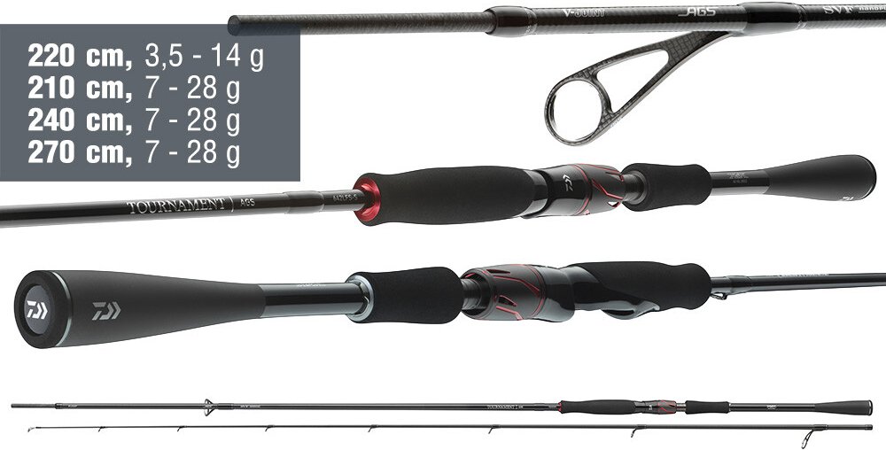 Výrazným rysem řady Tournament AGS je použití extrémně lehkých oček AGS s karbonovým rámem. Tato očka poskytují výjimečnou citlivost a přenášejí do ruky i ty nejmenší vibrace nástrahy, strukturu dna nebo drobné záběry. Tournament AGS – pro rybáře, kteří očekávají maximální kontrolu nad nástrahou, perfektní zpětnou vazbu a technologickou dokonalost.