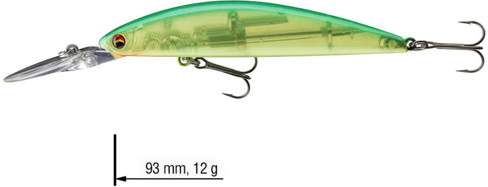 Tato plovoucí nástraha o délce 93mm je skutečnou tajnou zbraní na candáty, okouny a boleny. Model DR je určen do středních vrstev vody. Díky patentovanému systému „Mag Lock Silent Weight Oscillation System je možné dosáhnout mimořádně dalekých hodů. Díky speciální konstrukci těla a potápivé lopatky je tato nástraha také velice vhodná pro lov na řekách a v silných proudech. Výrazná akce dělá tuto n...