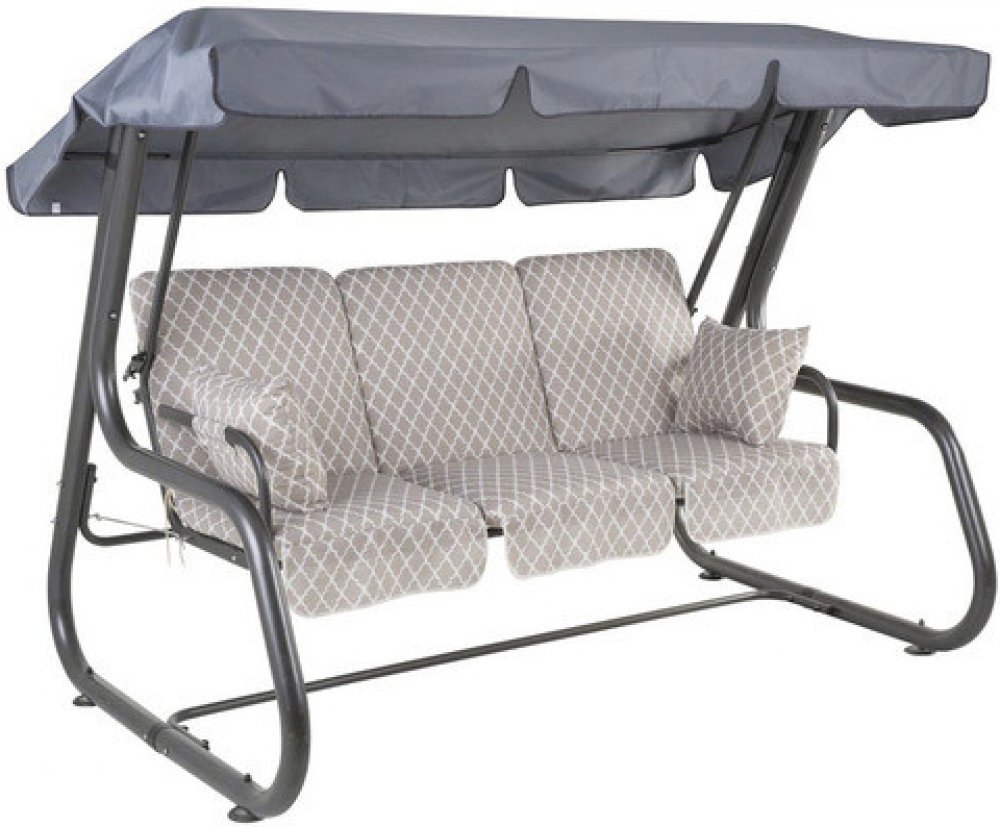 Houpačka pro 4 osoby s rozkládací sedačkou, která je upevněna na pružinách.