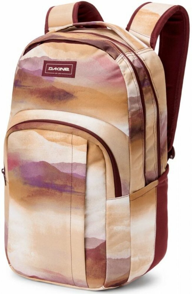 Model campus od značky Dakine. Kolekce 2026. Barva béžová + vínová.