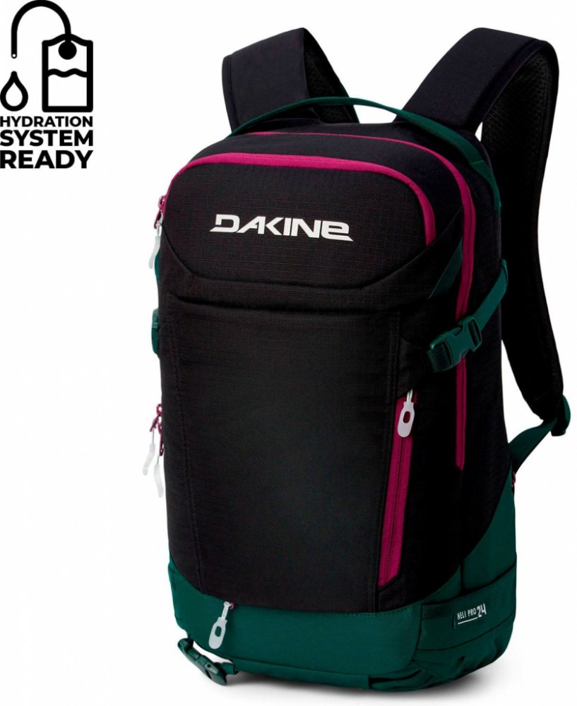 Ženám speciálně přizpůsobený batoh Dakine Heli Pro 24L ti nabídne mnoho zajímavých funkcí a jednoduchý design. Disponuje systémem pro vertikální i horizontální uchycení snowboardu nebo diagonální a áčkové připevnění lyží, kapsou na lopatu či jiné nářadí, kapsou na hydrovak, fleecem podšitou kapsou na brýle a nezbytnou záchrannou píšťalkou. Zádový panel, ramenní popruhy i bederní pás jsou polstrovány pro maximální pohodlí při celodenním nošení.