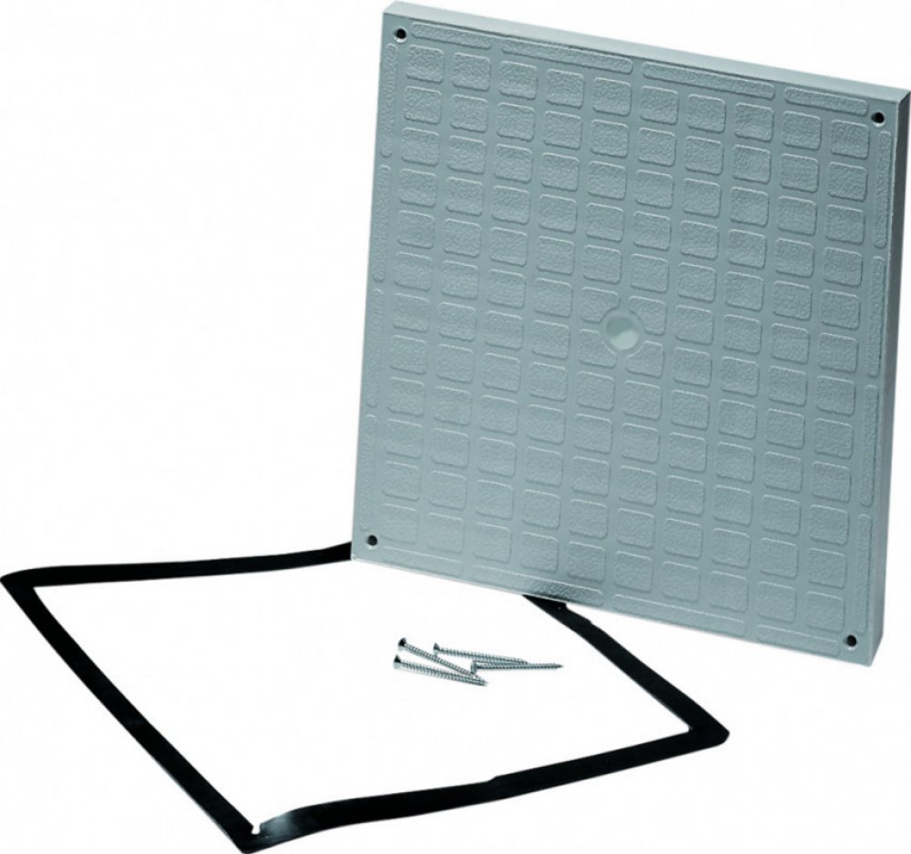 Hermetický poklop šedé barvy je vyroben z polypropylenu a je určen pro osazení do revizních šachet, u kterých se vyžaduje vzduchotěsné uzavření šachty, jako například v případech, kdy se šachta používá ve vnějším prostředí ke spojům elektrických vedení. Balení obsahuje těsnící sadu, která zabraňuje pronikání vody do revizní šachty. Montáž se provádí osazením těsnícího prvku na zárubu revizní šach...