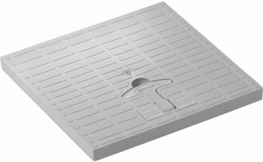 Poklop šedé barvy s madlem sloužícímu pro snadné vyjmutí je vyroben z polypropylenu. Poklop je určen pro osazení do revizních šachet, nebo rámů určených k zabetonování.