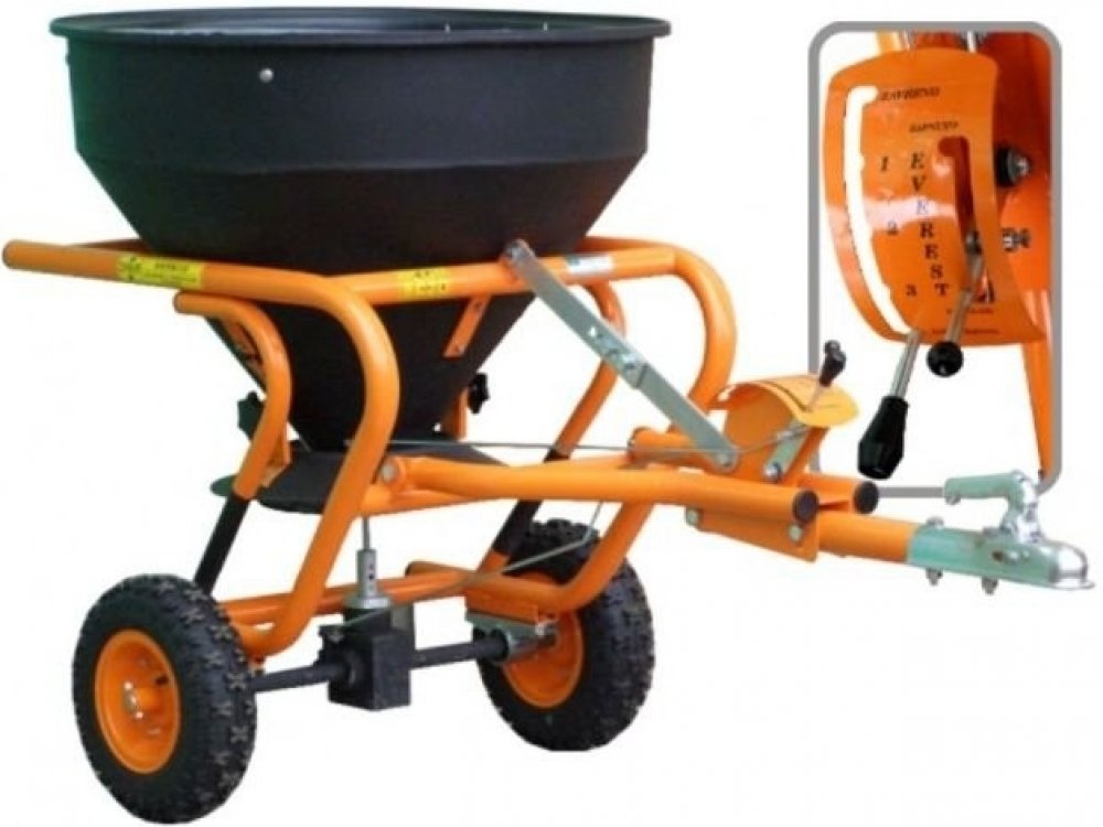Naše rozmetače jsou konstruovány tak, že je možno je použít jak na hnojení zemědělských ploch v letním období, ale současně i k posypu chodníků a cest solí v zimním období. Rozmetač KRH03 je tažen stejně jako přívěsný vozík za automobilem, ve výbavě má i závěsné oko pro zapojení za všechny typy traktorů. Pohon rozmetacího mechanismu je odvozen od kol ocelovou převodovkou s olejovou náplní. Množství vysypávané soli se plynule reguluje. Zásobník na sůl je z laminátu, exponované součásti jsou z nerezové oceli. Šířku posypávaného pásu lze regulovat. V horní části nádoby je síto.