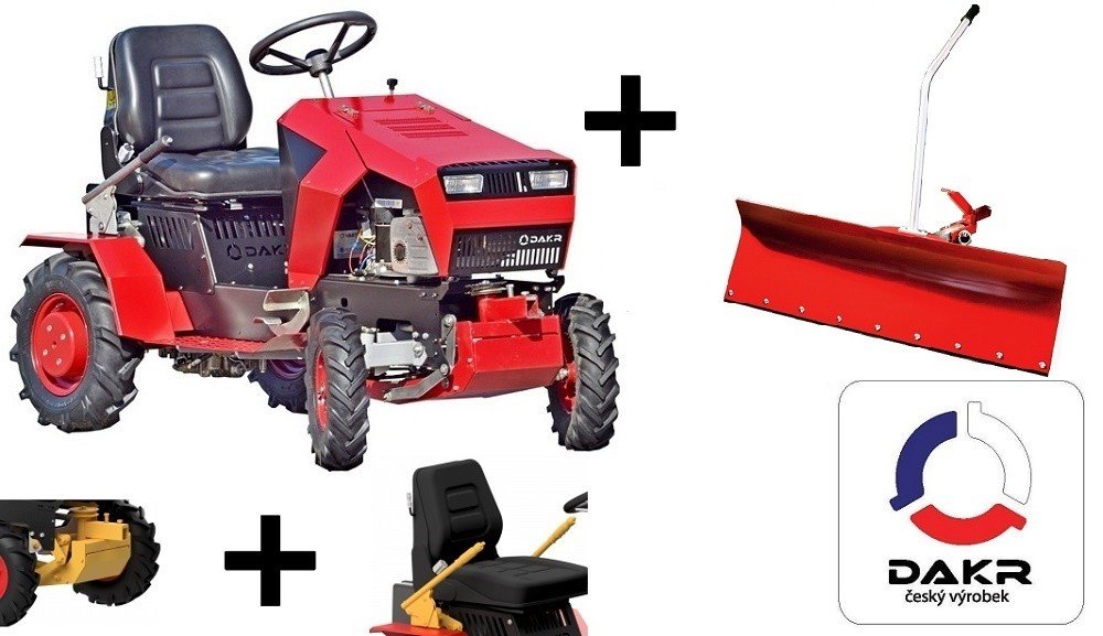 Motor o výkonu 15,5 Hp, hydrostatická převodovka, zvedání nástavců z místa obsluhy, možnost bohatého příslušenství.
