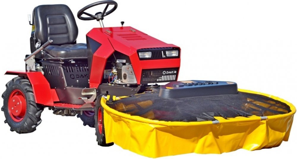 Připojeným pracovním adaptérem je osvědčená dvoububnová sekačka RZS 121, která seká nízkou i vysokou trávu. Žací bubny mají ocelové celoplošné podběhy, na každém bubnu jsou dva robustní otočné nože, jež jsou speciálně zakaleny, aby byly dostatečně tvrdé, ale současně nebyly křehké. Žací bubny jsou v místě uchycení nožů prolisovány, aby se zvýšila pevnost bubnů. Každá hřídel žacích bubnů je uložena na dvou místech v robustních ložiscích. Žací bubny jsou poháněny řetězy a převodovkou. Z převodovky na motor je otáčení přenášeno klínovým řemenem vyráběným německou firmou Optibelt speciálně pro stroj DAKR RZS 121. Oproti běžným klínovým řemenům přenáší podstatně vyšší zatížení a navíc bez délkových změn způsobených zahříváním. Klínový řemen mezi motorem a převodovkou omezuje možnost poškození především klikové hřídele motoru i některých dalších drahých dílů ,pohonné jednotky, ,při nárazech sekačky do pevných překážek, jako jsou kameny, betonové obrubníky či ocelové trubky. Díky pohonu žacích bubnů řetězy se dráhy nožů překrývají, ale současně jsou v jedné výšce, protože se nepotkávají. Proto je tráva rovnoměrně posečena, bez takzvaných 'kohoutů', které vytváří sekačky, které mají bubny v rozdílných výškách.