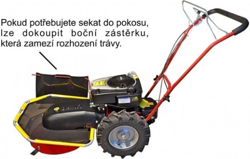 Mulčovač je vhodný k sečení luk a zahrad, bez nutnosti hrábání posečené trávy. Na rámu je uchycen mulčovací nástavec, které lze jednoduše demontovat. Stroj je vybaven brzdou žacího nástroje, po vypnutí se zastaví do 5 vteřin. Je možno zakoupit i nástavec bubnové sekačky, čímž vznikne stavebnice, která umožní střídat mulčování a sečení tak, aby nedošlo k znehodnocení pozemku.