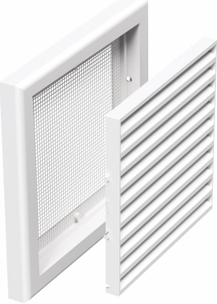 Plastová větrací mřížka se síťkou proti hmyzu 186x186 mm bez příruby v bílé barvě je vhodná jak pro větrání, tak i nasávání. Mřížka má pevné horizontální žaluzie se sklonem.PoužitíVentilační mřížka je určena k větrání z bytů či průmyslových objektů, jako jsou kuchyně, koupelny, kanceláře, WC, prodejny, sklady, garáže apod.MontážPřipevňuje se na zeď či omítku pomocí šroubů do děr, které jsou skryty...