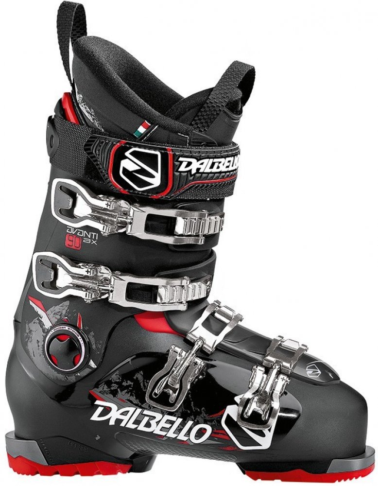 Sjezdové boty Dalbello Avanti AX 90 Širší varianta sjezdových bot pro lyžaře, kteří jsou sportovně založeni, ale preferují pohodlí před výkonem. Skelet, v nártní části široký 102 mm, je vyroben z vysoce kvalitního polymeru dbHylite, který je extrémně lehký a pevný, zároveň zaručuje vynikající tlumení nárazů a vibrací. Podrážku skeletu doplňují patentované výměnné, extra pevné, prvky na špičce a na patě boty. Speciální materiál s vysokou hustotou, ze kterého jsou vyrobeny, je zárukou vysoké odolnosti při častém používání. Dalšími přednostmi těchto sjezdových bot jsou 4 hliníkové přezky (materiál F800) s možností mikroposuvu, možnost změkčení svrchní části boty (ideální pro chůzi či delší stání bez lyží) přepínacím mechanismem v zadní části boty, velcro pásek šíře 40 mm, výškově nastavitelný spoiler v lýtkové části a podrážka bot, která je opatřena výměnnými prvky z materiálu Dura-Grip a úpravou Grip Walk, jenž usnadňuje chůzi a hlavně zabraňuje smekání bot při chůzi po hladkém povrchu.