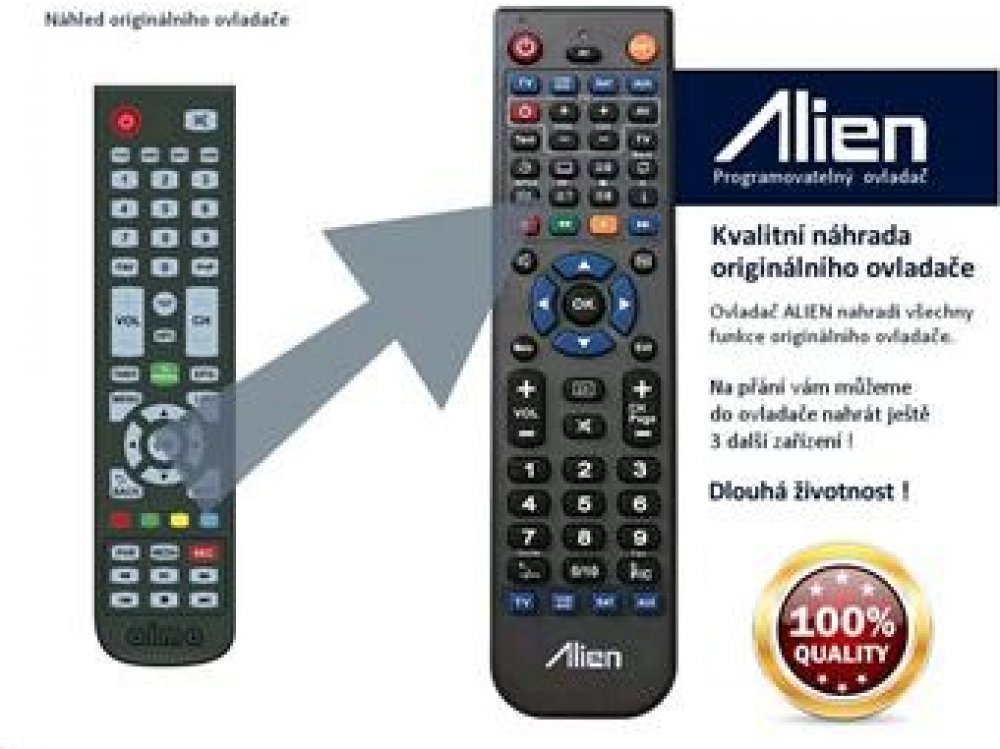 Pod značkou ALIEN získáte kvalitní a levnou náhradu originálního ovladače, který již není často k dispozici nebo je několikanásobně dražší. Ovladač ALIEN svou kvalitou a mechanickým zpracováním často předčí originální ovladače a zaručuje tak dlouhou životnost.