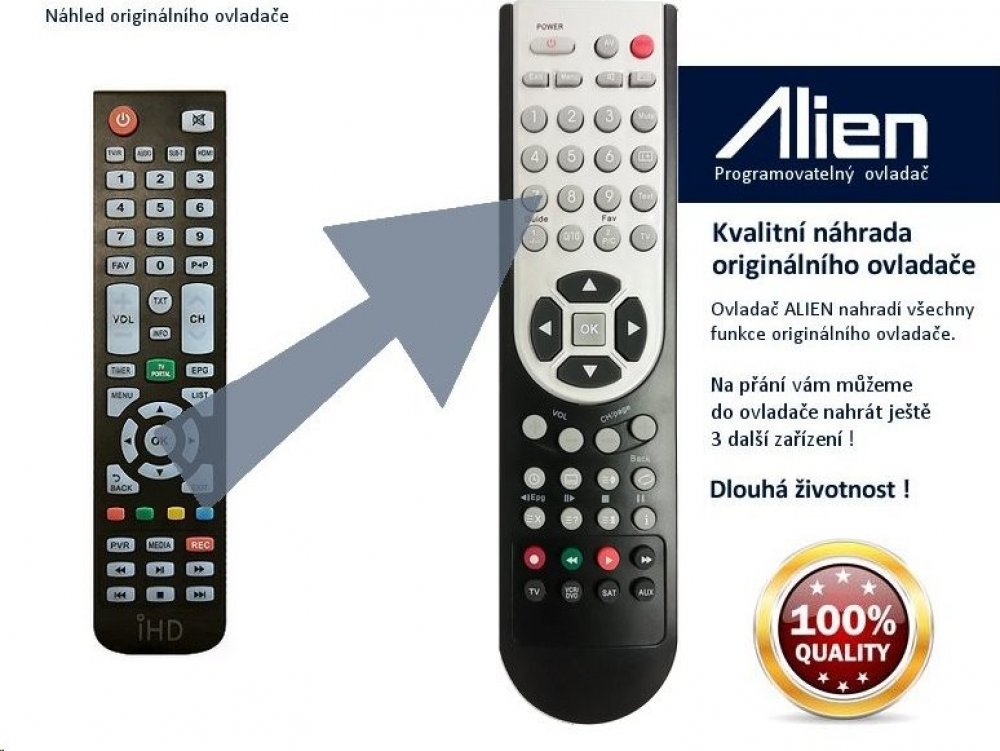 Ovladač je naprogramován na vašem zařízení. ALIEN nahrazuje všechny funkce originálního ovladače.