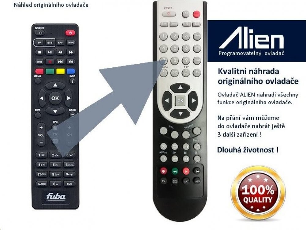 Pod značkou ALIEN získáte kvalitní a levnou náhradu originálního ovladače, který již není často k dispozici nebo je několikanásobně dražší. Ovladač ALIEN svou kvalitou a mechanickým zpracováním často předčí originální ovladače a zaručuje tak dlouhou životnost.