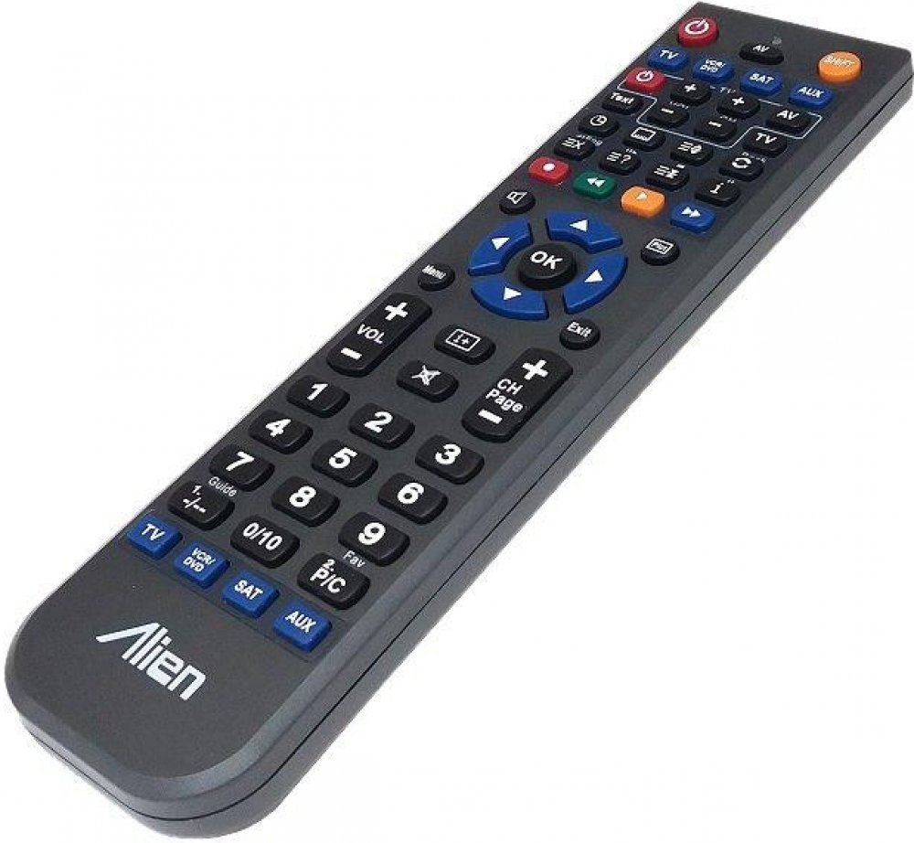 Ovladač ALIEN 4v1 lze naprogramovat až na 4 přístroje. Znamená to, že můžete jedním ovladačem ovládat zároveň satelitní přijímač, televizor nebo třeba DVD. Chcete-li do objednaného ovladače naprogramovat ještě další přístroje, tak nám v objednávce do poznámky napište přesný typ dálkového ovladače vašeho zařízení.