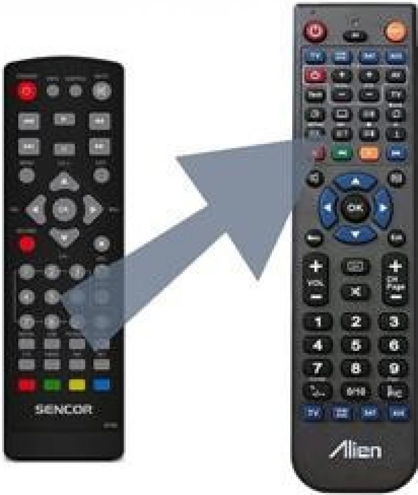 Ovladač ALIEN 4v1 lze naprogramovat až na 4 přístroje. Znamená to, že můžete jedním ovladačem ovládat současně satelitní přijímač, televizor nebo třeba DVD. Chcete-li objednat ovladač naprogramovat ještě další zařízení, napište nám do objednávky do poznámky přesný typ zařízení dálkového ovládání vašeho zařízení.