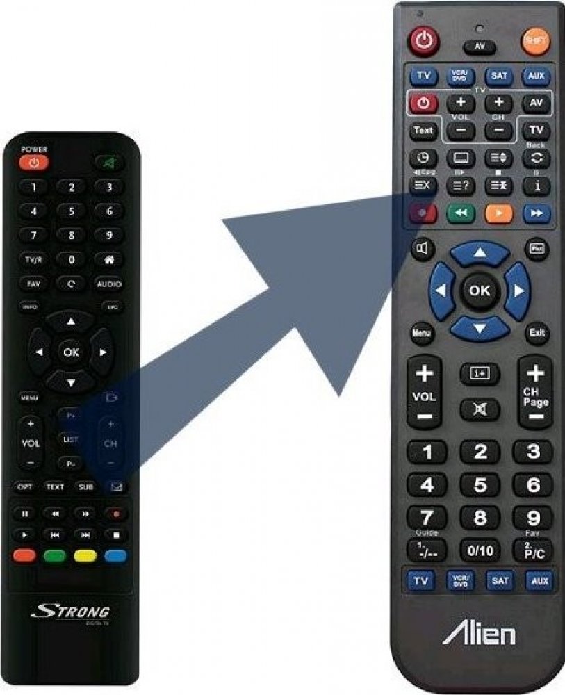 Ovladač ALIEN 4v1 lze naprogramovat až na 4 přístroje. Znamená to, že můžete jedním ovladačem ovládat současně satelitní přijímač, televizor nebo třeba DVD. Chcete-li objednat ovladač naprogramovat ještě další zařízení, napište nám do objednávky do poznámky přesný typ zařízení dálkového ovládání vašeho zařízení.