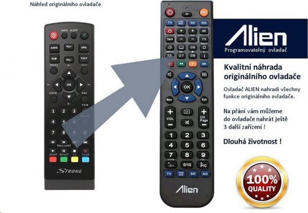 Pod znackou ALIEN získáte kvalitní a levnou náhradu originálního ovladace, který již není casto k dispozici nebo je nekolikanásobne dražší. Ovladac ALIEN svou kvalitou a mechanickým zpracováním casto predcí originální ovladace a zarucuje tak dlouhou životnost.