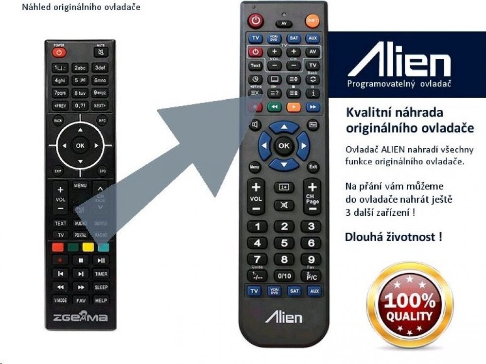Náhradní dálkový ovladač, většina funkcí stejných jako u originálního ovládání. Dlouhá životnost, kvalitní provedení. Ihned k použití!