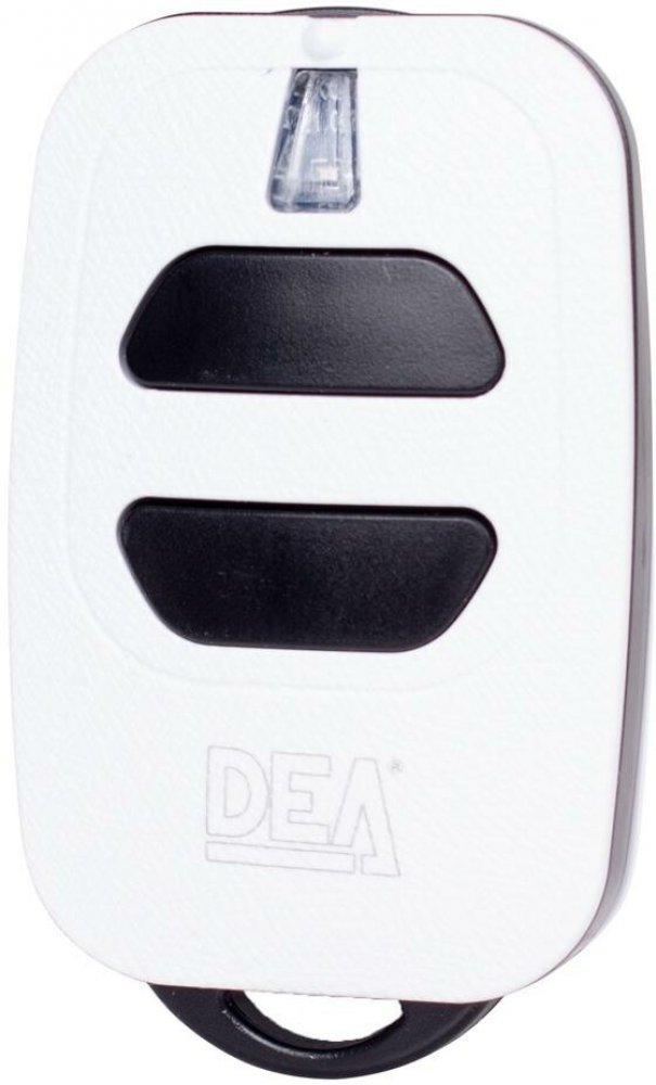 Dvoukanálové dálkové ovládání DEA pracující na frekvenci 433,92 MHz s dosahem až 300 metrů (v otevřeném, nerušeném prostoru).