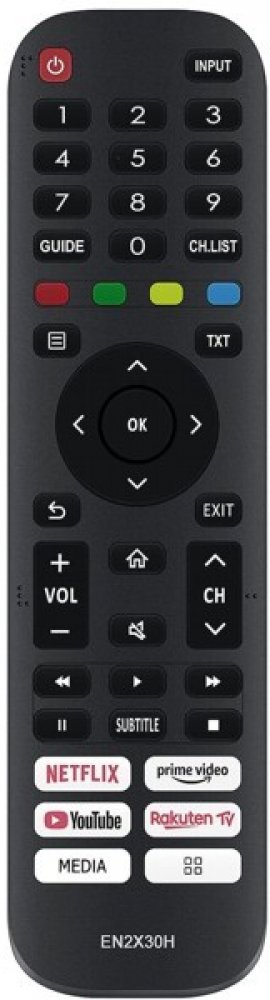 Dálkový ovladač prosím vždy vybírejte podle označení a ne podle vzhledu. Naléhavě doporučujeme ujistit se, že oba 2 ovladače, Váš i ten, který jste si vybrali, mají stejné označení.Náhradní dálkové ovládání EN2X30H pro televizory Hisense je kvalitní náhrada originálního ovladače Nevyžaduje žádné nastavování, má všechny funkce, jako původní originální ovladač. baterie není součástí baleníKompatibilní s modely Hisense: 32A5600F, A20251G, 40A5600F, A20251K, 40A5600F, A202905, 40A5600F, A203202, 40A5600F, A20360Z, A203611, 40A5620F, A203611, 40AE5500F, A20390H, 32AE5500F, A20390J, 40AE5500F, A20390K, 32A5600F, A204807, 32A5600F, A21010B, 40A5620F, A210115, 32A5600F, A21040B, 32A5600F, A210501, 32A5600F, A210502, 32AE5500F, A210502, 40A5600F, A21090D, 40AE5500F, A21090T, 32AE5500F, A21091F, 32A5600F, A21091N, 32A5620F, A21091S, 32A5600F, A210926, 32A5600F, A210928, 32A5600F, A21092C, 40AE5500F, A21093P, 32A5600F, A21093T, 32AE5500F, A21093U, 40A5600F, A21093V, 32AE5500F, A21095G, 32A5600F, A211608, 32A5600F, A211609, 32A5600F, A211708, 32A5600F, A214601, 32A5600F, A21471X, 32A5620F, A21510B, 32A5600F, A220419, 32AE5500F, A22042Z, 40A5600F, G202904, 40A5600F, G20328O, 40A5600F, G20328P, 32A5600F, G2212M1