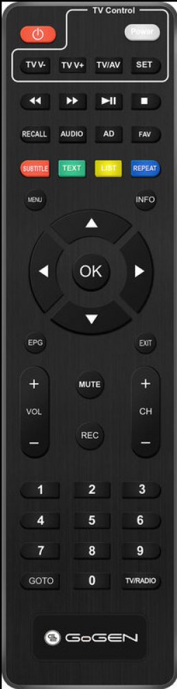 Gogen originální dálkový ovladač pro uvedené modely DVB143T2, DVB282T2,GoGEN DVB 142 T2 PVR, DVB142T2 PVR