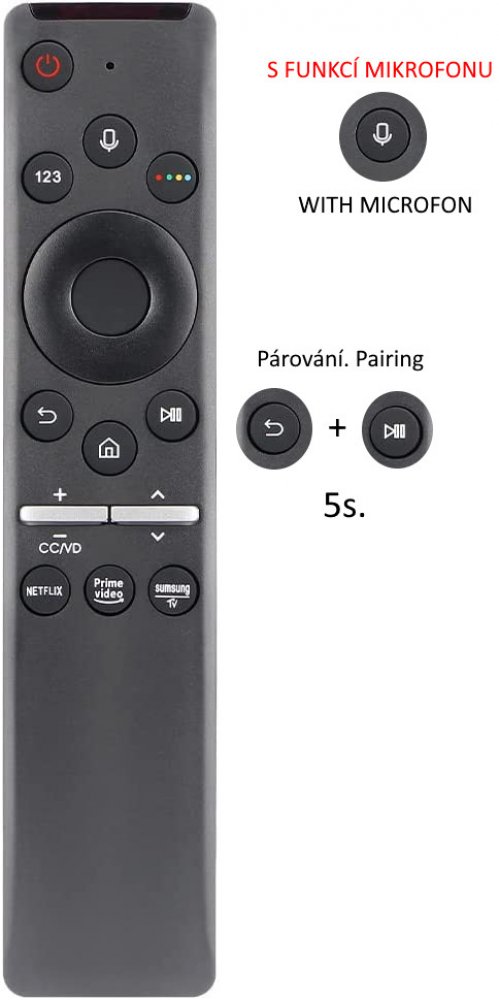 SAMSUNG náhradní dálkový ovladač. Například pro UE55MU7042T, UE49NU8002 Náhradní ovladač je IR - používá vysílací diodu. Nikoliv Bluetooth