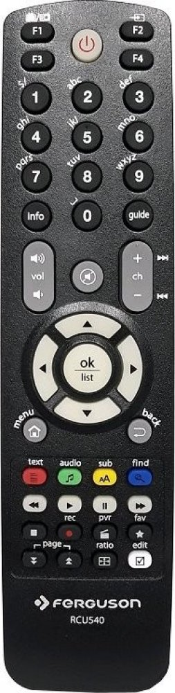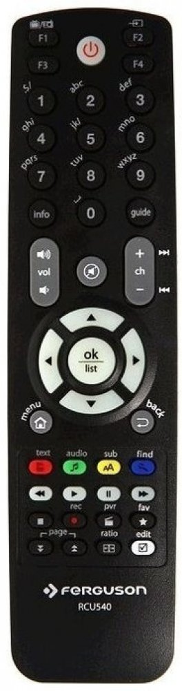 Nový originální dálkový ovladač FERGUSON RCU-540 (RCU540). Dálkový ovladač je určen pro tyto modely FERGUSON: ARIVA 102E , ARIVA 100, ARIVA 100 CABLE, ARIVA 100E, ARIVA 102 CABLE , ARIVA 102 MINI , ARIVA 102CABLE, ARIVA 102E, ARIVA 102E (OD/FROM 2012), ARIVA 102MINI (OD/FROM 2012), ARIVA 103, ARIVA 103 MINI, ARIVA 103E , ARIVA 120 COMBO, ARIVA 120COMBO, ARIVA 150 COMBO , ARIVA 153 COMBO , ARIVA 200, ARIVA 200 COMBO , ARIVA 200COMBO, ARIVA 202E, ARIVA 203, ARIVA 203E , ARIVA 203HD, ARIVA 210 COMBO , ARIVA 210 COMBO F, ARIVA 210COMBO, ARIVA 220 COMBO , ARIVA 220COMBO, ARIVA 250 COMBO , ARIVA 252 COMBO , ARIVA 255, ARIVA 300 , ARIVA 52E , ARIVA 52E (OD/FROM 2012), ARIVA HD COMBO , ARIVA HDCOMBO, ARIVA S300, FERGUSON ARIVA 153COMBO, FK SERIES, FK-3900 USB, FK-6900 CR, FK-7000, FK-7900 UCI, FK-8500 HD, K-8500 HD . (Nemusí zde být uvedeny úplně všechny kompatibilní modely. Pokud si nejste jisti, sdělte nám svůj model (použijte online chat, e-mail, telefon), neprodleně zkontrolujeme a ověříme, zda je tento ovladač kompatibilní s Vaším přístrojem. Za poskytnutou informaci ručíme.) Jedná se o ORIGINÁLNÍ dálkové ovladání, proto nevyžaduje žádné párování, nastavování ani žádné kódy. Stačí vložit baterie a funguje se všemi výše uvedenými modely.