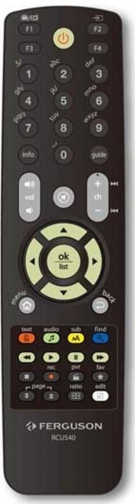 Nový originální dálkový ovladač FERGUSON RCU-540 (RCU540). Dálkový ovladač je určen pro tyto modely FERGUSON: ARIVA 102E , ARIVA 100, ARIVA 100 CABLE, ARIVA 100E, ARIVA 102 CABLE , ARIVA 102 MINI , ARIVA 102CABLE, ARIVA 102E, ARIVA 102E (OD/FROM 2012), ARIVA 102MINI (OD/FROM 2012), ARIVA 103, ARIVA 103 MINI, ARIVA 103E , ARIVA 120 COMBO, ARIVA 120COMBO, ARIVA 150 COMBO , ARIVA 153 COMBO , ARIVA 20...