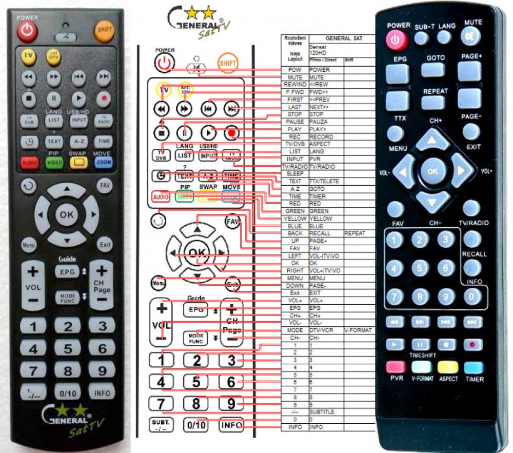 Náhradní dálkový ovladač AKAI DVB-T2 STB-2380 (DVBT2 STB2380) - 100procent náhrada 1:1 za originální dálkový ovladač. Dálkový ovladač je určen pro tyto modely AKAI: STB-2380, STB2380. (Nemusí zde být uvedeny úplně všechny kompatibilní modely. Pokud si nejste jisti, sdělte nám svůj model (použijte online chat, e-mail, telefon), neprodleně zkontrolujeme a ověříme, zda je tento ovladač kompatibilní s Vaším přístrojem. Za poskytnutou informaci ručíme.) Ovladač je dodáván ve verzi značkového dálkového ovladače General SAT/TV (zobrazen vlevo). Garantujeme Vám, že dostanete ovladač, který plně nahradí Váš původní originální ovladač a bude mít naprosto všechny funkce. Není to univerzální ovladač, ale ovladač, který je naprogramován a přímo určen pro modely přístrojů uvedené výše. Není třeba žádné párování, žádné kódy. Obdržíte od nás ovladač, který je připraven k použití - jediné, co musíte udělat, je vložit baterie a ovladač hned funguje. Podívejte se na obrázek ovladače a ujistěte se, že jsou v tabulce všechny funkce jako na původním originálním ovladači. Jedná se o plnohodnotný náhradní dálkový ovladač (není to „univerzál“). Má naprosto všechny funkce přesně jako originální ovladač. Záruční lhůta na ovladač je 2 roky. Dodáván také jednoduchý návod s mapováním funkcí. DOPLŇKOVÁ FUNKCE: Tento dálkový ovladač je možno naprogramovat na 1 další přístroj. Budete moci jedním ovladačem ovládat oba přístroje (např. SAT plus TV nebo SAT plus DVD apod). Pokud nám do komentáře v objednávce napíšete model dalšího přístroje, naprogramujeme Vám ovladač na oba. Za tuto doplňkovou službu bude naúčtován příplatek k ceně ovladače 50 Kč: více informací