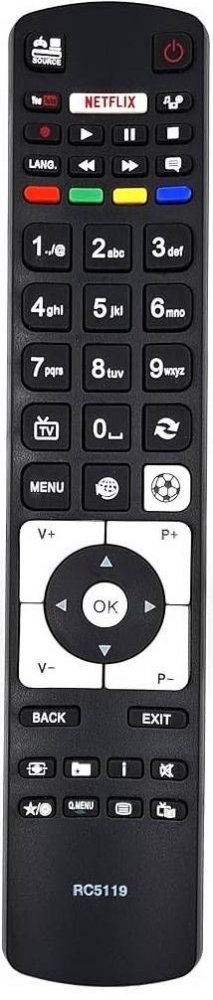 Náhradní dálkový ovladač AKAI RC5119. Dálkový ovladač je určen pro tyto modely :32HDDLED SMART [10088358, 27157909, 27098171], 32LEDHD SMART [10093366, 27233104, 27338349, 27322048, 27178110], 48LEDFHD SMART [10093370, 27233318]. (Nemusí zde být uvedeny úplně všechny kompatibilní modely. Pokud si nejste jisti, sdělte nám svůj model (e-mail, telefon), neprodleně zkontrolujeme a ověříme, zda je tent