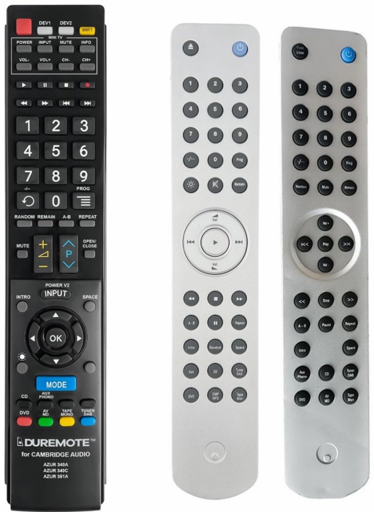 Dálkový ovladač CAMBRIDGE AUDIO AZUR 340AC, AZUR 351A duplikát 1:1 originálního dálkového ovladače. Dálkový ovladač je určen pro tyto modely CAMBRIDGE: AZUR 340A, AZUR 340AC, AZUR 340C, AZUR 351A. (Nemusí zde být uvedeny úplně všechny kompatibilní modely. Pokud si nejste jisti, sdělte nám svůj model (použijte online chat, e-mail, telefon), neprodleně zkontrolujeme a ověříme, zda je tento ovladač k...