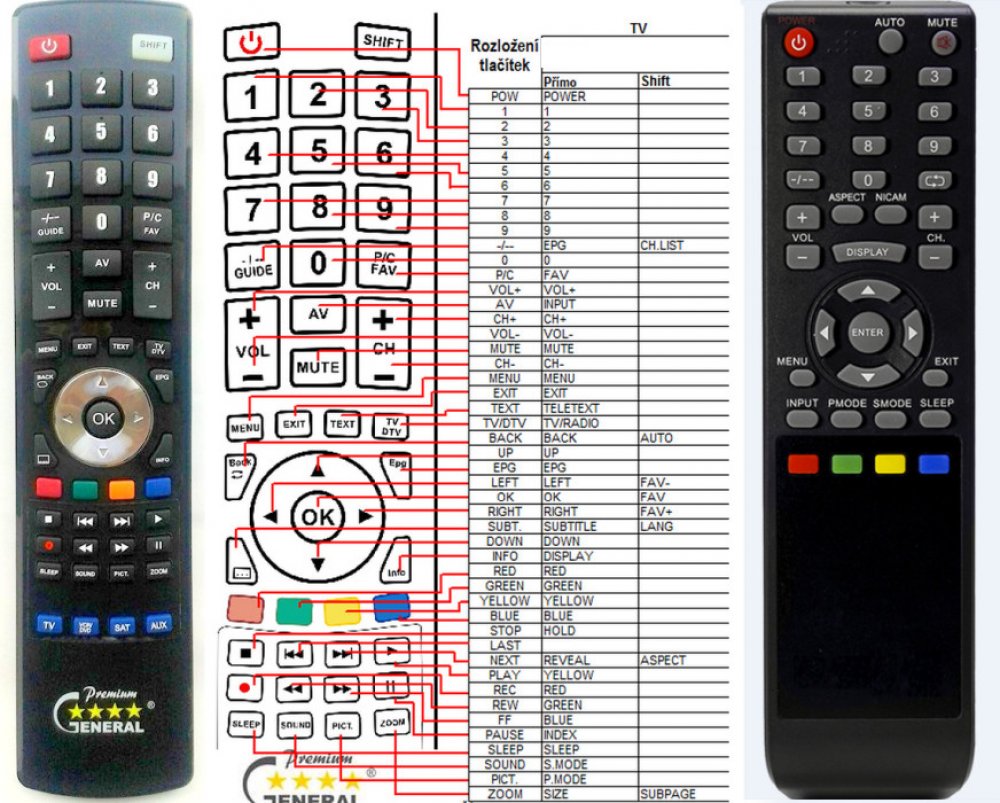 Náhradní dálkový ovladač CHANGHONG 19B1000H - 100% náhrada 1:1 za originální dálkový ovladač. Dálkový ovladač byl vyvinut speciálně na míru pro tyto modely značky CHANGHONG:19B1000, 19B1000H. (Nemusí zde být uvedeny úplně všechny kompatibilní modely. Pokud si nejste jisti, sdělte nám svůj model (použijte online chat, e-mail, telefon), neprodleně zkontrolujeme a ověříme, zda je tento ovladač kompatibilní s Vaším přístrojem. Za poskytnutou informaci ručíme.) Ovladač je dodáván ve verzi značkového dálkového ovladače General Premium (zobrazen vlevo). Garantujeme Vám, že dostanete ovladač, který plně nahradí Váš původní originální ovladač a bude mít naprosto všechny funkce stejné.Není to univerzální ovladač, ale ovladač, který je naprogramován a přímo určen pro modely přístrojů uvedené výše. Není třeba žádné párování, žádné kódy. Obdržíte od nás ovladač, který je připraven k použití - jediné, co musíte udělat, je vložit baterie a ovladač hned funguje. Podívejte se na obrázek ovladače a ujistěte se, že jsou v tabulce všechny funkce jako na původním originálním ovladači. Jedná se o plnohodnotný náhradní dálkový ovladač (není to „univerzál“). Má naprosto všechny funkce přesně jako originální ovladač. Záruční lhůta na ovladač je 3 roky. Dodáván také jednoduchý návod s mapováním funkcí. DOPLŇKOVÁ FUNKCE: Tento dálkový ovladač je možno naprogramovat na 1-4 zařízení (celkem tedy 4). Budete moci jedním ovladačem ovládat několik různých přístrojů jedním ovladačem. Pokud nám do komentáře v objednávce napíšete modely dalších přístrojů, naprogramujeme Vám ovladač na všechny. Za tuto doplňkovou službu bude naúčtován příplatek k ceně ovladače 50 Kč: více informacíV případě, že v budoucnu vyměníte/obměníte Vaši domácí elektroniku, jsme schopni Vám tento ovladač přeprogramovat na naprosto jakékoliv nové/á zařízení. Ovladač General přežije Váš stávající přístroj!