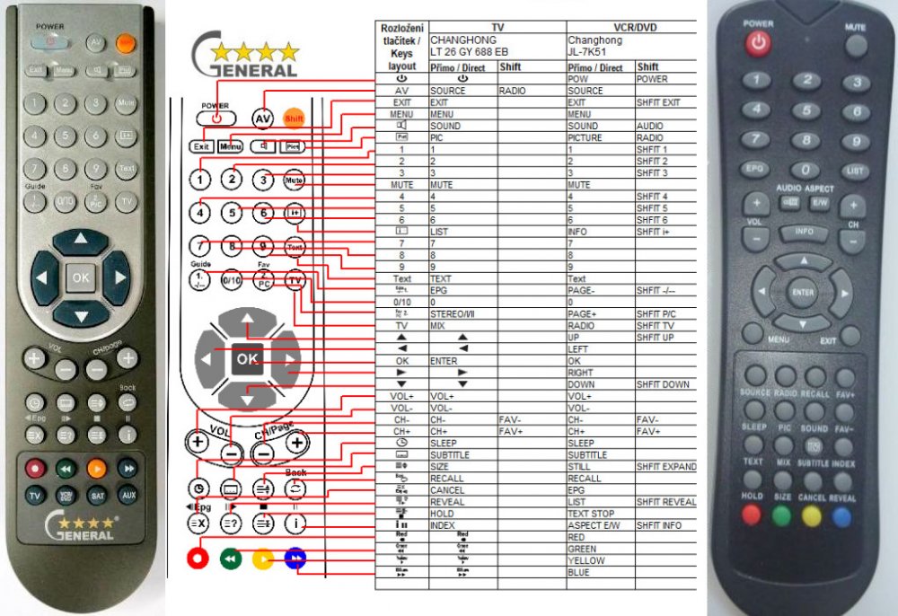 Náhradní dálkový ovladač CHANGHONG GHK-4821-002 (GHK4821002) - 100% náhrada 1:1 za originální dálkový ovladač. Dálkový ovladač byl vyvinut speciálně na míru pro tyto modely značky CHANGHONG:LT-26GY638EB, LT-26GY680EB, LT-26GY688EB, LT-32GY680EB, LT-32GY688EB, LT26GY638EB, LT26GY680EB, LT26GY688EB, LT32GY680EB, LT32GY688EB. (Nemusí zde být uvedeny úplně všechny kompatibilní modely. Pokud si nejste jisti, sdělte nám svůj model (použijte online chat, e-mail, telefon), neprodleně zkontrolujeme a ověříme, zda je tento ovladač kompatibilní s Vaším přístrojem. Za poskytnutou informaci ručíme.) Ovladač je dodáván ve verzi značkového dálkového ovladače General 4 (zobrazen vlevo). Garantujeme Vám, že dostanete ovladač, který plně nahradí Váš původní originální ovladač a bude mít naprosto všechny funkce stejné.Není to univerzální ovladač, ale ovladač, který je naprogramován a přímo určen pro modely přístrojů uvedené výše. Není třeba žádné párování, žádné kódy. Obdržíte od nás ovladač, který je připraven k použití - jediné, co musíte udělat, je vložit baterie a ovladač hned funguje. Podívejte se na obrázek ovladače a ujistěte se, že jsou v tabulce všechny funkce jako na původním originálním ovladači. Jedná se o plnohodnotný náhradní dálkový ovladač (není to „univerzál“). Má naprosto všechny funkce přesně jako originální ovladač. Záruční lhůta na ovladač je 3 roky. Dodáván také jednoduchý návod s mapováním funkcí. DOPLŇKOVÁ FUNKCE: Tento dálkový ovladač je možno naprogramovat na 1-4 zařízení (celkem tedy 4). Budete moci jedním ovladačem ovládat několik různých přístrojů jedním ovladačem. Pokud nám do komentáře v objednávce napíšete modely dalších přístrojů, naprogramujeme Vám ovladač na všechny. Za tuto doplňkovou službu bude naúčtován příplatek k ceně ovladače 50 Kč: více informacíV případě, že v budoucnu vyměníte/obměníte Vaši domácí elektroniku, jsme schopni Vám tento ovladač přeprogramovat na naprosto jakékoliv nové/á zařízení. Ovladač General přežije Váš s..