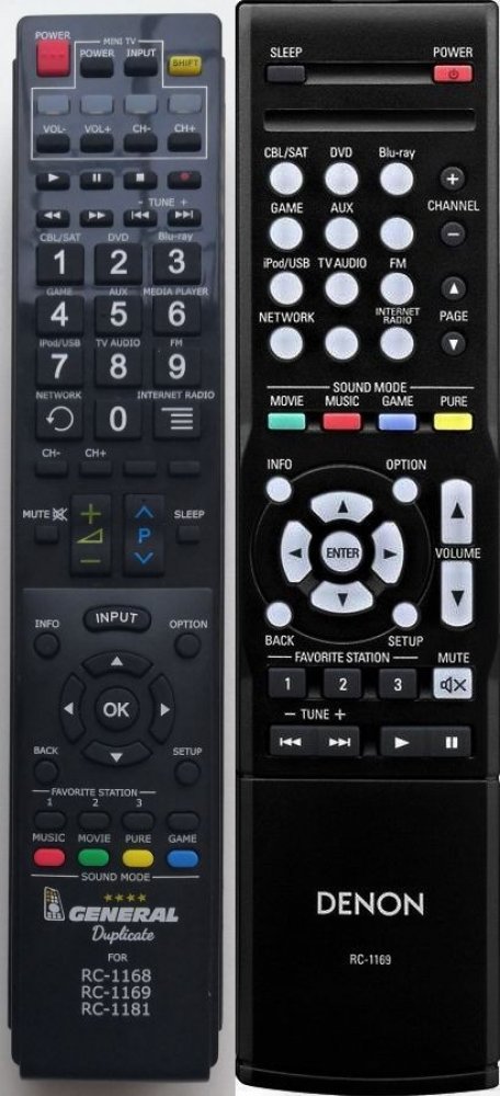 Náhradní dálkový ovladač DENON RC-1169 (RC1169). Dálkový ovladač je určen pro tyto modely DENON: AVR-1613, AVR-1713, AVR1613, AVR1713. (Nemusí zde být uvedeny úplně všechny kompatibilní modely. Pokud si nejste jisti, sdělte nám svůj model (použijte online chat, e-mail, telefon), neprodleně zkontrolujeme a ověříme, zda je tento ovladač kompatibilní s Vaším přístrojem. Za poskytnutou informaci ručím...