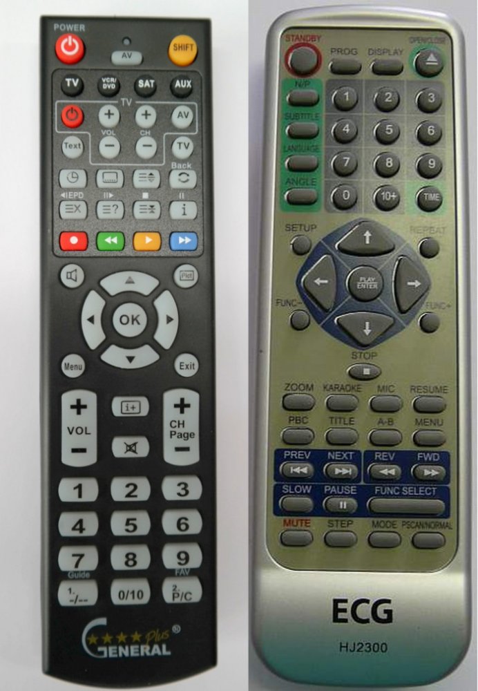 Náhradní dálkový ovladač ECG HJ-2300 (HJ2300) - 100% náhrada 1:1 za originální dálkový ovladač. Dálkový ovladač byl vyvinut speciálně na míru pro tyto modely značky ECG:HJ-2300. (Nemusí zde být uvedeny úplně všechny kompatibilní modely. Pokud si nejste jisti, sdělte nám svůj model (použijte online chat, e-mail, telefon), neprodleně zkontrolujeme a ověříme, zda je tento ovladač kompatibilní s Vaším přístrojem. Za poskytnutou informaci ručíme.) Ovladač je dodáván ve verzi značkového dálkového ovladače General Premium (zobrazen vlevo). Garantujeme Vám, že dostanete ovladač, který plně nahradí Váš původní originální ovladač a bude mít naprosto všechny funkce stejné.Není to univerzální ovladač, ale ovladač, který je naprogramován a přímo určen pro modely přístrojů uvedené výše. Není třeba žádné párování, žádné kódy. Obdržíte od nás ovladač, který je připraven k použití - jediné, co musíte udělat, je vložit baterie a ovladač hned funguje. Podívejte se na obrázek ovladače a ujistěte se, že jsou v tabulce všechny funkce jako na původním originálním ovladači. Jedná se o plnohodnotný náhradní dálkový ovladač (není to „univerzál“). Má naprosto všechny funkce přesně jako originální ovladač. Záruční lhůta na ovladač je 3 roky. Dodáván také jednoduchý návod s mapováním funkcí. DOPLŇKOVÁ FUNKCE: Tento dálkový ovladač je možno naprogramovat na 1-4 zařízení (celkem tedy 4). Budete moci jedním ovladačem ovládat několik různých přístrojů jedním ovladačem. Pokud nám do komentáře v objednávce napíšete modely dalších přístrojů, naprogramujeme Vám ovladač na všechny. Za tuto doplňkovou službu bude naúčtován příplatek k ceně ovladače 50 Kč: více informacíV případě, že v budoucnu vyměníte/obměníte Vaši domácí elektroniku, jsme schopni Vám tento ovladač přeprogramovat na naprosto jakékoliv nové/á zařízení. Ovladač General přežije Váš stávající přístroj!