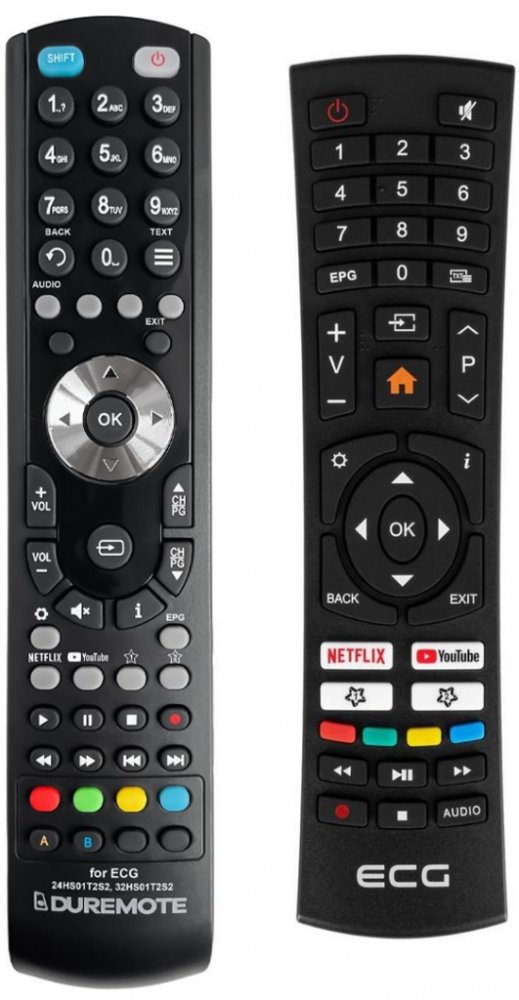Náhradní dálkový ovladač ECG HS01T2S2, FS01T2S2, US01T2S2 - 100procent náhrada 1:1 za originální dálkový ovladač. Dálkový ovladač je určen pro tyto modely ECG: 24HS01T2S2, 32HS01T2S2, 40FS01T2S2, 43US01T2S2, 50US01T2S2. (Nemusí zde být uvedeny úplně všechny kompatibilní modely. Pokud si nejste jisti, sdělte nám svůj model (použijte online chat, e-mail, telefon), neprodleně zkontrolujeme a ověříme,...