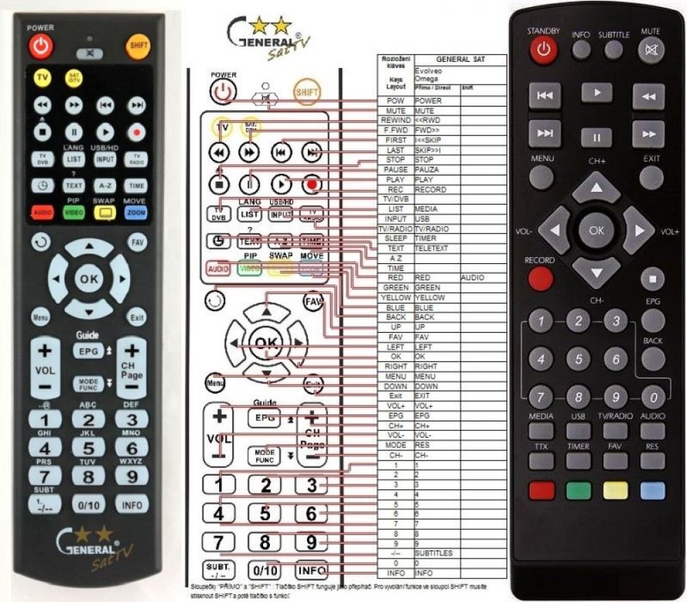 Ovladač je dodáván ve verzi NEUNIVERZÁLNÍHO ovladače General (zobrazen vlevo!).