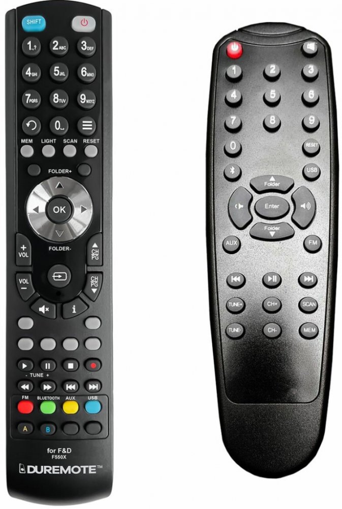 Dálkový ovladač F&D F550X duplikát 1:1 originálního dálkového ovladače. Dálkový ovladač je určen pro tyto modely F&D:A111X, A180X, F380X, F550X, F580X, FD-SPK016. (Nemusí zde být uvedeny úplně všechny kompatibilní modely. Pokud si nejste jisti, sdělte nám svůj model (použijte online chat, e-mail, telefon), neprodleně zkontrolujeme a ověříme, zda je tento ovladač kompatibilní s Vaším přístrojem. Za...
