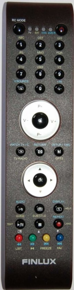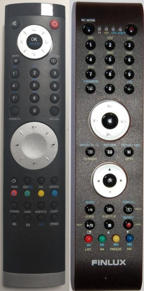 Náhradní dálkový ovladač FINLUX RC1110. Jedná se o naprosto stejný dálkový ovladač jako originál. Jediný rozdíl je, že nemá logo FINLUX (to je jediný důvod, proč je levnější). Vysoká kvalita materiálu a zpracování, naprosto bezporuchový. Všechny naše dálkové ovladače kontrolujeme a testujeme, proto garantujeme jejich spolehlivost, nadstandartně dlouhý dosah signálu a výbornou citlivost tlačítek.Tento dálkový ovladač nemusíte nijak párovat, nevyžaduje žádné nastavování ani kódy. Stačí vložit baterie a funguje se všemi výše uvedenými modely. Tento ovladač momentálně není skladem. Pro bližší informace nás kontaktujte.
