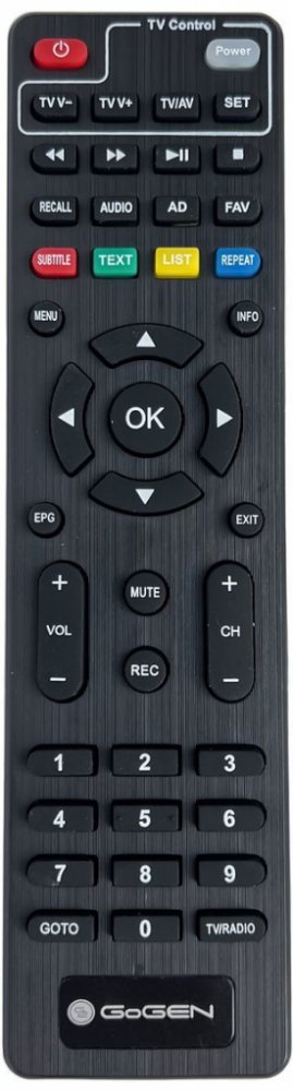 Dálkový ovladač GOGEN DVB-282T2, DVB-142T2, DVB-143T2 (DVB282T2, DVB142T2, DVB143T2) duplikát 1:1 originálního dálkového ovladače. Dokonalá 1:1 kopie navržená a vyrobená naší firmou – má všechny funkce originálního ovladače pro tyto modely značky GOGEN:DVB 142 T2 PVR, DVB 143 T2 PVR, DVB 282 T2 PVR, DVB-T143T2, DVB142T2PVR , DVB143T2PVR, DVB282T2PVR, DVBT143T2. (Nemusí zde být uvedeny úplně všechn...