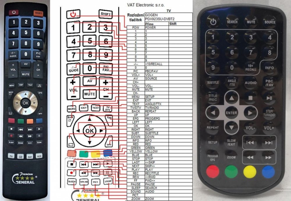Náhradní dálkový ovladač GOGEN PDX923SU-DVBT2 (PDX923SUDVBT2) - 100procent náhrada 1:1 za originální dálkový ovladač. Dálkový ovladač je určen pro tyto modely GOGEN: PDS923SU DVB-T2, PDS923SUDVB-T2, PDS923SUDVBT2, PDX1043SU DVB-T2, PDX1043SUDVB-T2, PDX1043SUDVBT2. (Nemusí zde být uvedeny úplně všechny kompatibilní modely. Pokud si nejste jisti, sdělte nám svůj model (použijte online chat, e-mail, telefon), neprodleně zkontrolujeme a ověříme, zda je tento ovladač kompatibilní s Vaším přístrojem. Za poskytnutou informaci ručíme.) Ovladač je dodáván ve verzi značkového dálkového ovladače General DVD/AUDIO (zobrazen vlevo). Garantujeme Vám, že dostanete ovladač, který plně nahradí Váš původní originální ovladač a bude mít naprosto všechny funkce. Není to univerzální ovladač, ale ovladač, který je naprogramován a přímo určen pro modely přístrojů uvedené výše. Není třeba žádné párování, žádné kódy. Obdržíte od nás ovladač, který je připraven k použití - jediné, co musíte udělat, je vložit baterie a ovladač hned funguje. Podívejte se na obrázek ovladače a ujistěte se, že jsou v tabulce všechny funkce jako na původním originálním ovladači. Jedná se o plnohodnotný náhradní dálkový ovladač (není to „univerzál“). Má naprosto všechny funkce přesně jako originální ovladač. Záruční lhůta na ovladač je 2 roky. Dodáván také jednoduchý návod s mapováním funkcí. DOPLŇKOVÁ FUNKCE: Tento dálkový ovladač je možno naprogramovat na 1 další přístroj. Budete moci jedním ovladačem ovládat oba přístroje (např. DVD plus TV nebo SOUNDBAR plus TV apod.). Pokud nám do komentáře v objednávce napíšete model dalšího přístroje, naprogramujeme Vám ovladač na oba. Za tuto doplňkovou službu bude naúčtován příplatek k ceně ovladače 50 Kč: více informací
