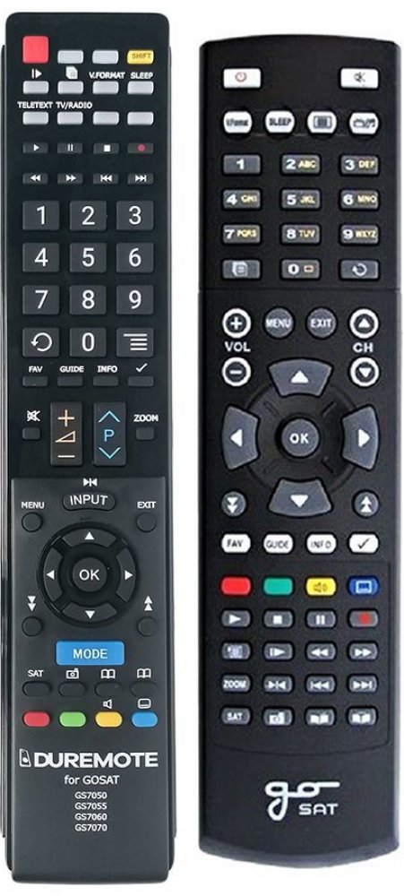 Dálkový ovladač GOSAT GS7060HDI duplikát 1:1 originálního dálkového ovladače. Dálkový ovladač je určen pro tyto modely GOSAT:GS-7050, GS-7055, GS-7060, GS7010, GS7010HDI, GS7050, GS7050HDI, GS7055, GS7055HDI, GS7056, GS7056HD, GS7056HDI, GS7060, GS7060HDI, SUNSAT S200/S30, SUNSAT S200/S300. (Nemusí zde být uvedeny úplně všechny kompatibilní modely. Pokud si nejste jisti, sdělte nám svůj model (použijte online chat, e-mail, telefon), neprodleně zkontrolujeme a ověříme, zda je tento ovladač kompatibilní s Vaším přístrojem. Za poskytnutou informaci ručíme.) Dálkový ovladač General SAT duplikát má naprosto všechny funkce a popisky tlačítek stejné jako originální dálkový ovladač. Není třeba nic nastavovat, žádné kódy, funguje ihned po vložení baterií se všemi výše uvedenými modely.Ovladač je dodáván ve verzi značkového dálkového ovladače General SAT duplikát (zobrazen vlevo) Jedná se o ovladač vyrobený pro specifické zařízení – NENÍ to univerzální ovladač! Má naprosto všechny funkce jako originální dálkový ovladač. Má stejné popisky tlačítek, jako jste byli zvyklí z originálu. Popisky tlačítek jsou velmi odolné a nejdou seškrábat ani hrubou silou. 2 roky záruka.General SAT duplikát byl navržen a vyroben přesně podle originálního dálkového ovladače tlačítko po tlačítku. Ovladač je vyvinut a testován v České republice a podléhá CE a ROHS standardům. SNADNÉ INTUITIVNÍ POUŽÍVÁNÍ: Na rozdíl od běžných náhradních ovladačů, General SAT duplikát má 100% odpovídající popisky tlačítek jako na originálním ovladači. Srovnání: Jiné univerzální nebo programovatelné náhrady mají kvůli snížení nákladů názvy/popisky a rozložení tlačítek univerzální, popisky tlačítek často neodpovídají funkci tlačítka a vyžadují tedy návody k použití. To často vede k nejasnostem, co které tlačítko dělá a stálá potřeba manuálu je velmi obtěžující. S ovladačem General SAT duplikát žádný návod nepotřebujete, tlačítko dělá přesně to, co symbolizuje jeho popisek.GARANTUJEME 100% FUNKČNOST: Narozdíl od jiných náhrad..