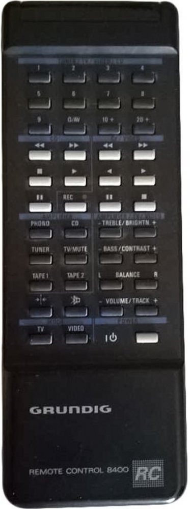 Náhradní dálkový ovladač GRUNDIG RC-8400 (RC8400) - 100% náhrada 1:1 za originální dálkový ovladač. Dálkový ovladač byl vyvinut speciálně na míru pro tyto modely značky GRUNDIG:V-8400MK II, V-8400MK2, V8400MK II, V8400MK2. (Nemusí zde být uvedeny úplně všechny kompatibilní modely. Pokud si nejste jisti, sdělte nám svůj model (použijte online chat, e-mail, telefon), neprodleně zkontrolujeme a ověří...