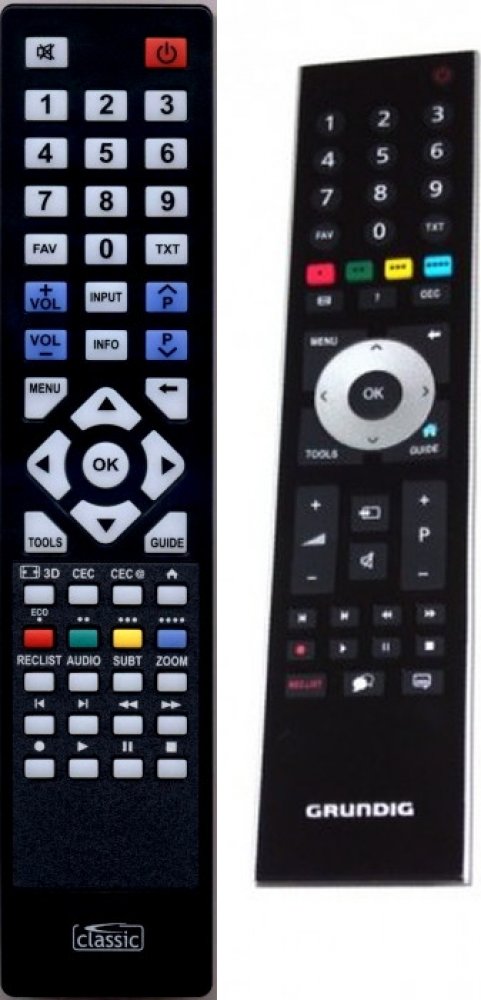 Náhradní dálkový ovladač GRUNDIG TP6, TP6187R, RC3214803/01. Dálkový ovladač byl vyvinut speciálně na míru pro tyto modely značky GRUNDIG: 22VLE5421BG, 22VLE5421BG, 22VLE5520BG, 26CLC9205BG, 26VLC9140S, 26VLC9201BG, 26VLE7101BF, 26VLE7101WF, 26VLE7200BM, 26VLE7200WM, 26VLE8100CF, 26VLE8100WF, 28VLE4500BF, 28VLE5500BG, 32-4100H, 32CLC9235BG, 32VLC6121, 32VLC6200BG, 32VLC9141T2, 32VLC9220BG, 32VLC92...