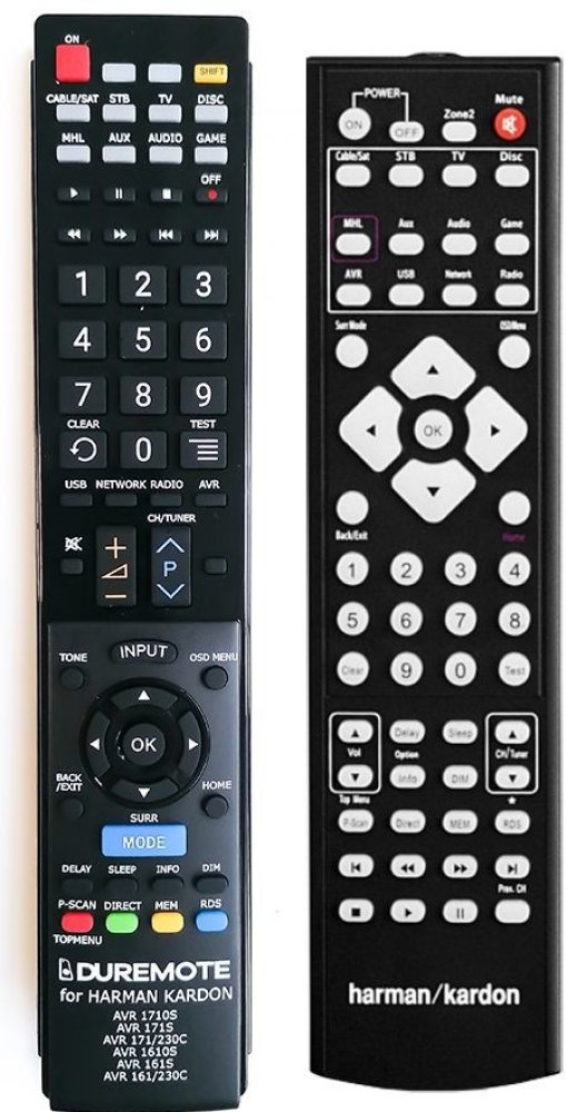 Dálkový ovladač HARMAN KARDON AVR1610S, AVR161S, AVR161/230C duplikát 1:1 originálního dálkového ovladače. Dokonalá 1:1 kopie navržená a vyrobená naší firmou – má všechny funkce originálního ovladače pro tyto modely značky HARMAN KARDON:AVR-161, AVR-161/230C, AVR-1610, AVR161, AVR161/230C, AVR1610. (Nemusí zde být uvedeny úplně všechny kompatibilní modely. Pokud si nejste jisti, sdělte nám svůj mo...