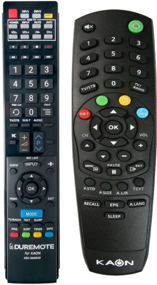 Dálkový ovladač KAON 275 HD+ duplikát 1:1 originálního dálkového ovladače. Dálkový ovladač General Duremote má naprosto všechny funkce a popisky tlačítek stejné jako originální dálkový ovladač. Není třeba nic nastavovat, žádné kódy, funguje ihned po vložení baterií se všemi výše uvedenými modely.Ovladač je dodáván ve verzi značkového dálkového ovladače General Duremote (zobrazen vlevo)Jedná se o ovladač vyrobený pro specifické zařízení – NENÍ to univerzální ovladač!Má naprosto všechny funkce jako originální dálkový ovladač.Má stejné popisky tlačítek, jako jste byli zvyklí z originálu.Popisky tlačítek jsou velmi odolné a nejdou seškrábat ani hrubou silou.3 roky záruka.Nulová poruchovost tohoto modelu! Nemáme zádné reklamace a přitom je to náš nejprodávanější ovladač.General Duremote byl tlačítko po tlačítku navržen a vyroben přesně podle originálního dálkového ovladače na obrázku vpravo. Výroben v naší firmě v Ostravě, vývoj, výroba i atesty v České republice - splňuje CE a ROHS standardy.SNADNÉ INTUITIVNÍ POUŽÍVÁNÍ: Na rozdíl od běžných náhradních ovladačů, General Duremote má 100% stejné popisky tlačítek jako Váš původní originální dálkový ovladač.Srovnání: Ostatní univerzální nebo programovatelné náhrady mají (kvůli úspoře nákladů) univerzální rozložení s nesprávně označenými tlačítky, a proto potřebují návod (tabulku funkcí), který říká, jaká je skutečná funkce jednotlivých tlačítek. To může způsobovat zmatek a nutnost neustálého vracení se k návodu je pro koncového uživatele obtěžující. Naopak při používání našeho dálkového ovladače General Duremote nahlížet do návodu vůbec nepotřebujete, protože tlačítka dělají přesně to, co symbolizuje jejich popisek.GARANTUJEME 100% FUNKČNOST: Narozdíl od jiných náhrad je každý dálkový ovladač General Duremote přímo v naší firmě naprogramován a testován na míru pro konkrétní zařízení tak, aby kód každého jednotlivého tlačítka odpovídal funkci tlačítka originálního ovladače. Díky tomu můžeme zaručit 100% funkčnost přesně stejnou jako má originální dálkový ovlada..