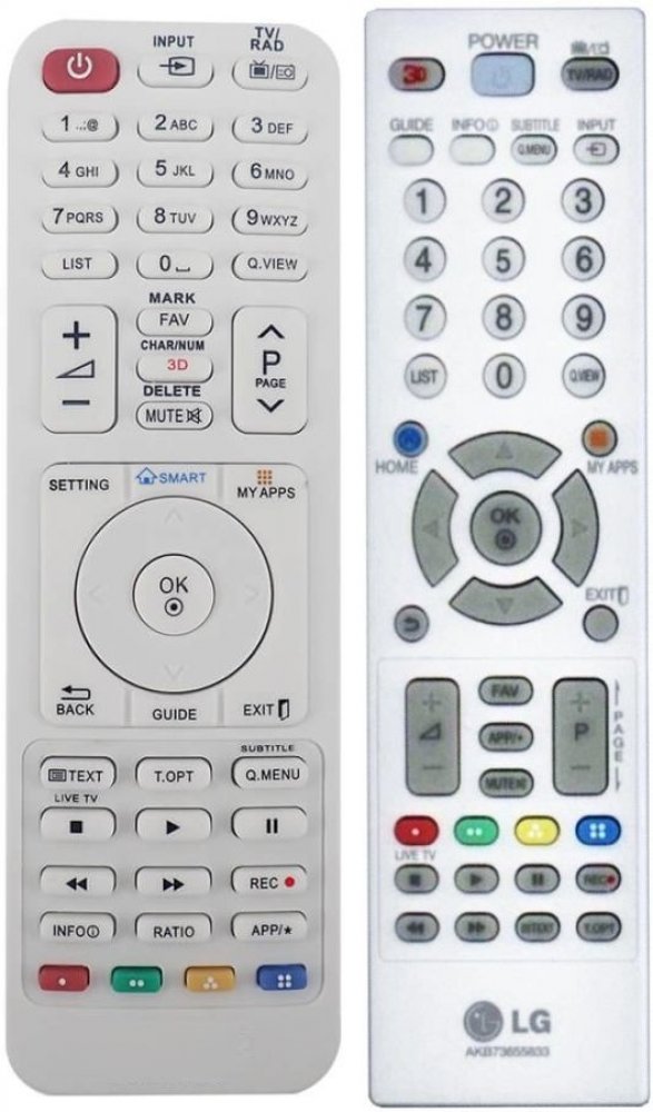 Náhradní dálkový ovladač LG AKB73655833. Je určen pro tyto modely LG:32LA620S, 32LA660S, 42LA620S, 42LA640S, 42LA660S, 42LA667S, 42LA690S, 42LA691S, 42LA740S, 42LA860V, 47LA620S, 47LA640S, 47LA660S, 47LA690S, 47LA691S, 47LA740S, 47LA790V, 47LA860V, 50LA620S, 50LA660S, 50PH670S, 55LA620S, 55LA640S, 55LA660S, 55LA690S, 55LA691S, 55LA740S, 55LA790V, 55LA860V, 60LA620S, 60LA740S, 60LA860V, 60PH670S, 65LA640S. (Nemusí zde být uvedeny úplně všechny kompatibilní modely. Pokud si nejste jisti, sdělte nám svůj model (použijte online chat, e-mail, telefon), neprodleně zkontrolujeme a ověříme, zda je tento ovladač kompatibilní s Vaším přístrojem. Za poskytnutou informaci ručíme.) Dodávaný dálkový ovladač je ČERNÝ (zobrazen vlevo).Jedná se o naprosto stejný dálkový ovladač jako originál. Jediný rozdíl je, že nemá logo LG (to je jediný důvod, proč je levnější). Vysoká kvalita materiálu a zpracování, naprosto bezporuchový. Všechny naše dálkové ovladače kontrolujeme a testujeme, proto garantujeme jejich spolehlivost, nadstandartně dlouhý dosah signálu a výbornou citlivost tlačítek.Tento dálkový ovladač nemusíte nijak párovat, nevyžaduje žádné nastavování ani kódy. Stačí vložit baterie a funguje se všemi výše uvedenými modely.