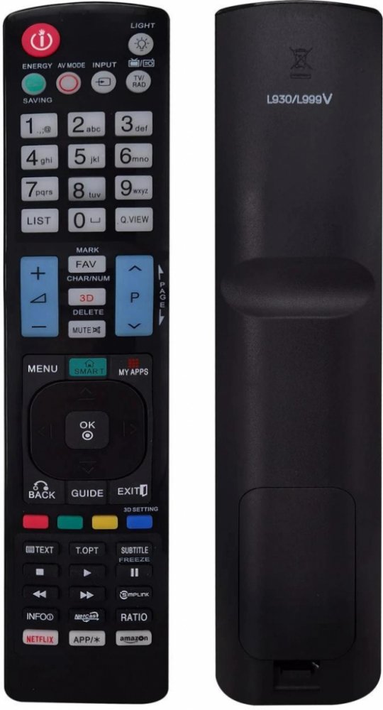 Náhradní dálkový ovladač LG AKB73756565. Dálkový ovladač byl vyvinut speciálně na míru pro tyto modely značky LG:32LB650, 39LB650, 42LB650, 42LB650V, 42LB6650V, 43UF6907-ZD, 47LB650, 47LB650V-ZN, 47LB650VZN, 47LB652V, 47LB674V, 47LB678V, 49UF8527, 50LB650, 50LB650V, 55LB650, 60LB650, 70LB650. (Nemusí zde být uvedeny úplně všechny kompatibilní modely. Pokud si nejste jisti, sdělte nám svůj model (použijte online chat, e-mail, telefon), neprodleně zkontrolujeme a ověříme, zda je tento ovladač kompatibilní s Vaším přístrojem. Za poskytnutou informaci ručíme.) Byl nahrazen kompatibilním dálkovým ovladačem AKB73615303 (zobrazen vlevo).Vysoká kvalita materiálu a zpracování, naprosto bezporuchový. Všechny naše dálkové ovladače kontrolujeme a testujeme, proto garantujeme jejich spolehlivost, nadstandartně dlouhý dosah signálu a výbornou citlivost tlačítek.Tento dálkový ovladač nemusíte nijak párovat, nevyžaduje žádné nastavování ani kódy. Stačí vložit baterie a funguje se všemi výše uvedenými modely.