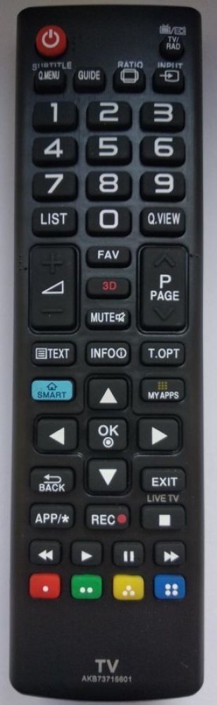 Náhradní dálkový ovladač LG AKB74475479. Je určen pro tyto modely LG:42LB5801, 42LB585V, 43UF6807, 43UF6857, 45UF6807, 45UF680V, 49UF6806, 49UF6807, 49UF6857, 55UF6807. (Nemusí zde být uvedeny úplně všechny kompatibilní modely. Pokud si nejste jisti, sdělte nám svůj model (použijte online chat, e-mail, telefon), neprodleně zkontrolujeme a ověříme, zda je tento ovladač kompatibilní s Vaším přístrojem. Za poskytnutou informaci ručíme.) Jedná se o naprosto stejný dálkový ovladač jako originál. Jediný rozdíl je, že nemá logo LG (to je jediný důvod, proč je levnější). Vysoká kvalita materiálu a zpracování, naprosto bezporuchový. Všechny naše dálkové ovladače kontrolujeme a testujeme, proto garantujeme jejich spolehlivost, nadstandartně dlouhý dosah signálu a výbornou citlivost tlačítek.Tento dálkový ovladač nemusíte nijak párovat, nevyžaduje žádné nastavování ani kódy. Stačí vložit baterie a funguje se všemi výše uvedenými modely.