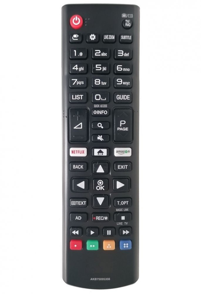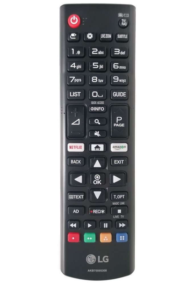 Náhradní dálkový ovladač LG AKB75095308 - 100procent náhrada 1:1 za originální dálkový ovladač. Dálkový ovladač je určen pro tyto modely LG: 32LJ590U, 32LJ610V, 32LK610BPLB, 43/50UP75*, 43/50UP76*, 43/50UP767*, 43/50UP77*, 43/50UP78*, 43/50UP80*, 43/50UP81*, 43LH576T, 43LJ614V, 43NANO75UQA, 43UJ620V, 43UJ6307, 43UJ6309, 43UJ630V, 43UJ634V, 43UK6400, 43UQ7070ZUD, 43UQ7070ZUM, 43UQ7590PUB, 43UQ7590PUK, 43UQ8000AUB, 43UQ8000AUK, 43UQ9000PUD, 49SJ800, 49SJ800V, 49SJ800VDE, 49SJ810, 49UJ6309, 49UJ630V, 49UJ634V, 49UJ635V, 50NANO75UQA, 50NANO80AQA, 50QNED80AQA, 50QNED80UQA, 50UQ7070ZUE, 50UQ7070ZUN, 50UQ7570PUA, 50UQ7570PUJ, 50UQ7590PUB, 50UQ7590PUK, 50UQ8000AUB, 50UQ8000AUK, 50UQ9000PUD, 55NANO75UQA, 55NANO80AQA, 55QNED80AQA, 55QNED80UQA, 55QNED85AQA, 55QNED85UQA, 55UJ6307, 55UJ630V, 55UJ634V, 55UP75*, 55UP76*, 55UP767*, 55UP77*, 55UP78*, 55UP80*, 55UP81*, 55UQ7070ZUE, 55UQ7070ZUN, 55UQ7570PUA, 55UQ7570PUJ, 55UQ7590PUB, 55UQ7590PUK, 55UQ8000AUB, 55UQ8000AUK, 55UQ9000PUD, 60/65UP77*, 60/65UP80*, 60UJ6307, 60UJ6309, 65NANO75UQA, 65NANO80AQA, 65QNED80AQA, 65QNED80UQA, 65QNED85AQA, 65QNED85UQA, 65QNED90UQA, 65QNED99UQA, 65UJ6307, 65UJ6309, 65UJ634V, 65UK6100PLB, 65UP75*, 65UP76*, 65UP767*, 65UP78*, 65UP81*, 65UQ7070ZUE, 65UQ7070ZUN, 65UQ7570PUA, 65UQ7570PUJ, 65UQ7590PUB, 65UQ7590PUK, 65UQ8000AUB, 65UQ8000AUK, 65UQ9000PUD, 70/75UP75*, 70/75UP767*, 70/75UP77*, 70/75UP81*, 70NANO75UQA, 70UP76706LB, 70UQ7070ZUD, 70UQ7070ZUM, 70UQ7590PUB, 70UQ7590PUK, 70UQ8000AUB, 70UQ8000AUK, 70UQ9000PUD, 75NANO75UQA, 75NANO80AQA, 75QNED80AQA, 75QNED80UQA, 75QNED85AQA, 75QNED85UQA, 75QNED90UQA, 75QNED99UQA, 75UP78*, 75UP80*, 75UQ7070ZUD, 75UQ7070ZUM, 75UQ7590PUB, 75UQ7590PUK, 75UQ8000AUB, 75UQ8000AUK, 75UQ9000PUD, 82/86UP80*, 82/86UP81, 86NANO75UQA, 86QNED80AQA, 86QNED80UQA, 86QNED85AQA, 86QNED85UQA, 86QNED90UQA, 86QNED99UQA, 86UQ7070ZUD, 86UQ7590ZUD, 86UQ8000AUB, 86UQ9000PUD, QE55Q700T, QE65Q700T. (Nemusí zde být uvedeny úplně všechny kompatibilní modely. Pokud si nejste jisti, sdělte nám svůj model (použijte online chat, e-mail, telefon), neprodleně zkontrolujeme a ověříme, zda je tento ovladač kompatibilní s Vaším přístrojem. Za poskytnutou informaci ručíme.) Ovladač je dodáván ve verzi značkového dálkového ovladače General Premium (zobrazen vlevo). Garantujeme Vám, že dostanete ovladač, který plně nahradí Váš původní originální ovladač a bude mít naprosto všechny funkce. Není to univerzální ovladač, ale ovladač, který je naprogramován a přímo určen pro modely přístrojů uvedené výše. Není třeba žádné párování, žádné kódy. Obdržíte od nás ovladač, který je připraven k použití - jediné, co musíte udělat, je vložit baterie a ovladač hned funguje. Podívejte se na obrázek ovladače a ujistěte se, že jsou v tabulce všechny funkce jako na původním originálním ovladači. Jedná se o plnohodnotný náhradní dálkový ovladač (není to „univerzál“). Má naprosto všechny funkce přesně jako originální ovladač. Záruční lhůta na ovladač je 2 roky. Dodáván také jednoduchý návod s mapováním funkcí. DOPLŇKOVÁ FUNKCE: Tento dálkový ovladač je možno naprogramovat na 1-4 zařízení (celkem tedy 4). Budete moci jedním ovladačem ovládat několik různých přístrojů jedním ovladačem. Pokud nám do komentáře v objednávce napíšete modely dalších přístrojů, naprogramujeme Vám ovladač na všechny. Za tuto doplňkovou službu bude naúčtován příplatek k ceně ovladače 50 Kč: více informací V případě, že v budoucnu vyměníte/obměníte Vaši domácí elektroniku, jsme schopni Vám tento ovladač přeprogramovat na naprosto jakékoliv nové/á zařízení. Ovladač General přežije Váš stávající přístroj!